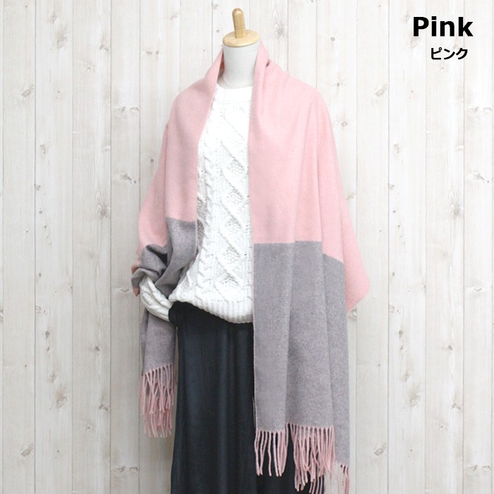 シンプルな厚手の大判バイカラーストールが登場!しっかり厚手でなめらかな肌触りの心地よいストール。