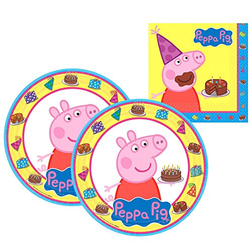 -. Feature : Peppa Pig Party Supplies Pack Includes: Lunch Plates and Lunch Napkins / 16 Lunch Plates (9"), by Amscan / 16 Lunch Napkins (7" x 7"), by Amscan