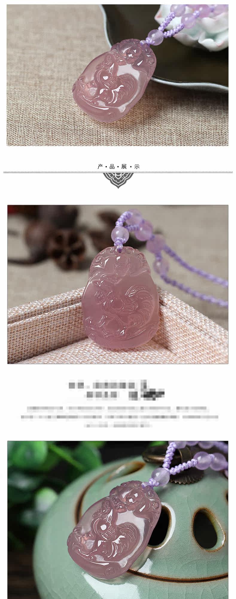 开光天然粉紫玉髓十二生肖鸡吉牛天助酉奇辰元吊坠