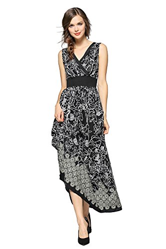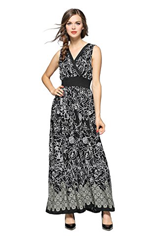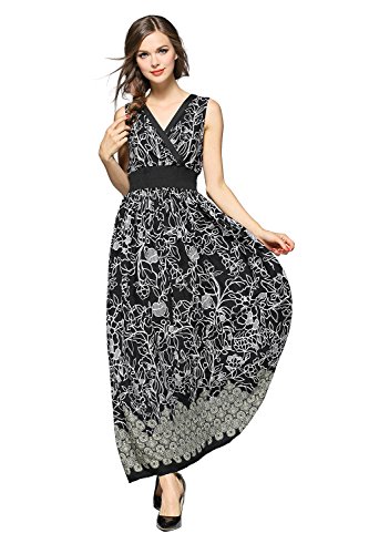 Title : Joy EnvyLand Women V Neck Floral Evening Party Prom Casual Cotton Maxi Dress,Black,Small
