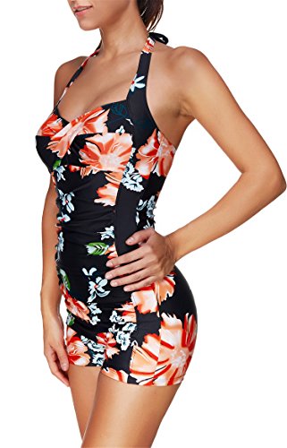 Title : Urban Virgin Women Retro Vintage Boy-Leg One Piece Pin Up Ruched Monokinis Swimsuit Print Flower Small (US: 0-2)