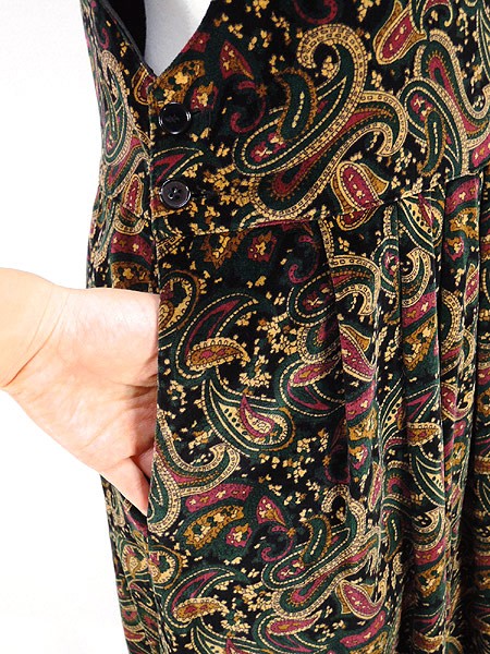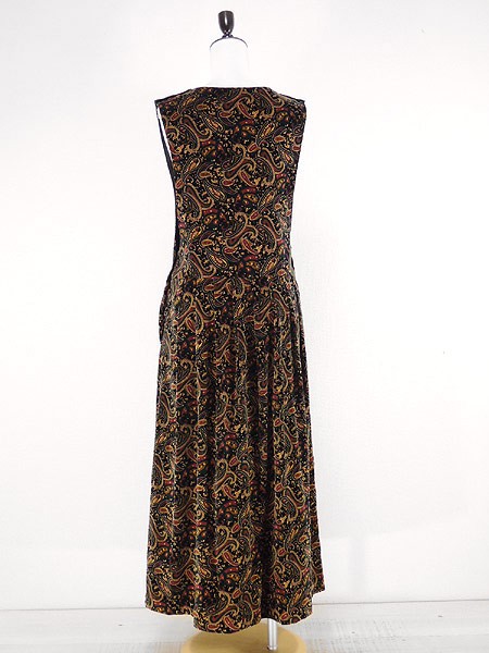 Ladies ブランド- カラー黒ベース メール便不可 コンディション★★★ 素材ベロア 表記サイズ10 実寸サイズ 着丈 125 cm 身幅 40 cm 肩幅 38 cm ウエスト 82 cm ※ウエスト・ヒップ以外は平置き採寸【code】#b
