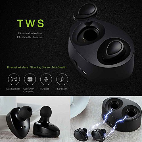 Mini Bluetooth Earbuds Earphone,Ounice Mini TWS Twins True Wireless Bluetooth 4.1 Sport Headphone Headset Built-in Mic with Portable Power Case Noise Cancelling Stereo In-Ear Earpiece (Black A)