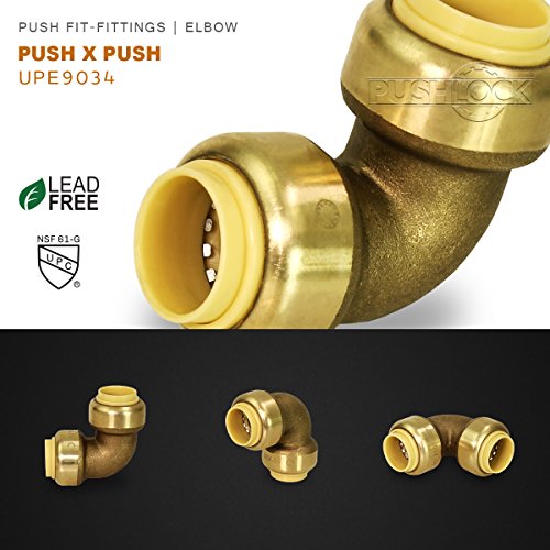 Everflow Pushlock UPE9034 3/4 Inch Long Push X Push Elbow for Push-Fit Fittings, Made with Lead Free DZR Forged Brass, Connects PEX, CPVC and Copper, Pre-Lubricated Quick Installation