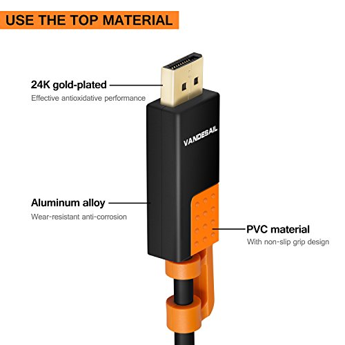 VANDESAIL Strengthened High Speed DisplayPort 1.2 to VGA Male to Male Cable with Gold Plated Double Shielded Material Characteristic Oxygen-free?copper wires providing our cable with the highest performance of transmission, and the double-shielded design has good screen effect for the anti-interference. PVC material with non-slip grip aluminum?alloy plugs design is used to matched with the 24K gold-plated connectors, combining both beauty and durability. All the working on details, just to provide the maximum durability and safety under the premise of transmission performance to you. Specifications? - Connector 1: DP Male? - Connector 2: VGA Female? - Plugs: 24K Gold plated - Length: 0.25m/ 0.8ft
