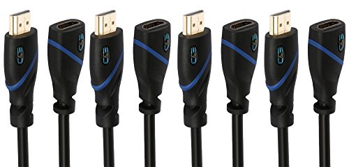 C&E 4 Pack, High Speed HDMI Extension Cable Male to Female 1.5 Feet, Supports Ethernet, 3D and Audio Return, CNE570778