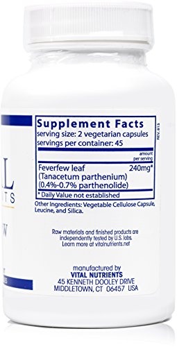 Vital Nutrients - Feverfew 120 mg - Herbal Support for Cranial Blood Vessels - 90 Capsules