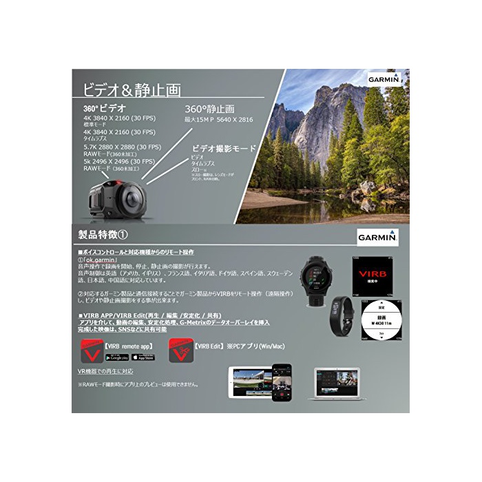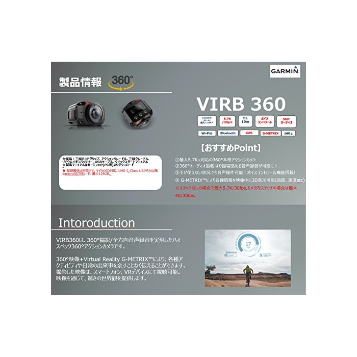 원본상품명: GARMIN(ガミン) アクションカメラ VIRB 360 ( 最大5.7K 360°撮影 手ブレ補正 GPS 音操作 ) 【日本正規品】 010-01743-10