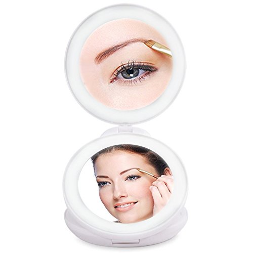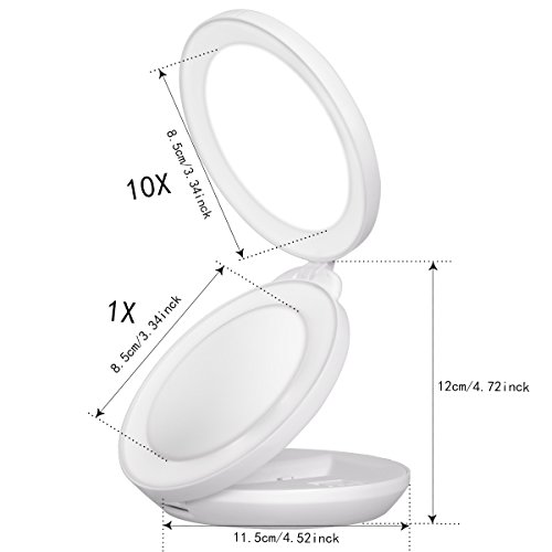 KEDSUM 1X/10X Double Sided LED Lighted Makeup Mirror- Compact Folding Vanity and Travel Mirror