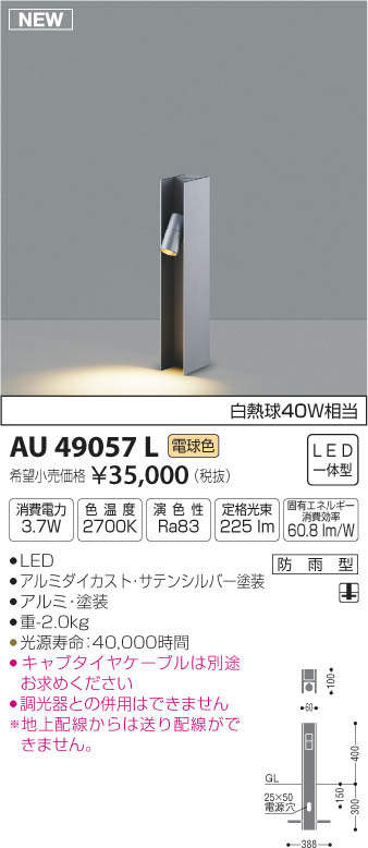 ●地上高-400 幅-60 出幅-100 埋込深-300mm 重-2.0kg