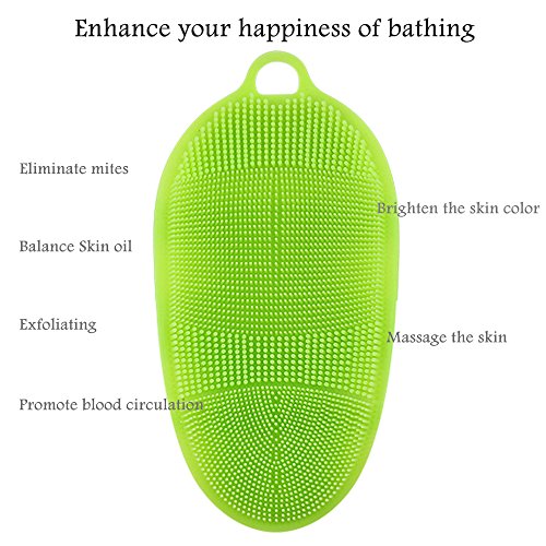 2980 two different diameter types silicone bristles, 360 degrees clean, massage the skin,relieve stress,perfect to relax muscles,eliminate mites,exfoliating, balance oil,promote blood circulation as well as increase the elasticity of your skin,brighten the skin color. Enhance your happiness of bathing
