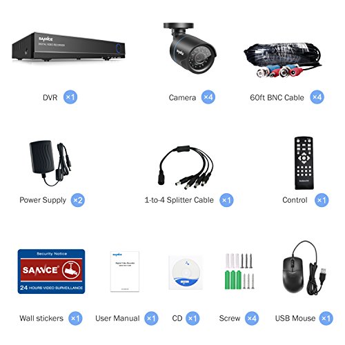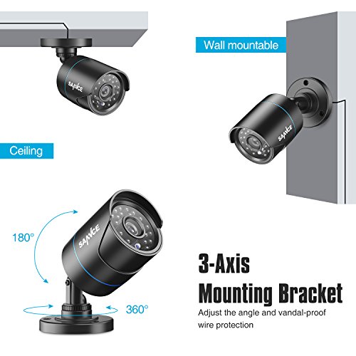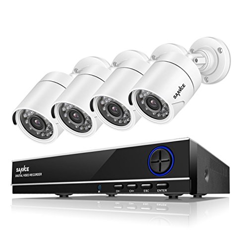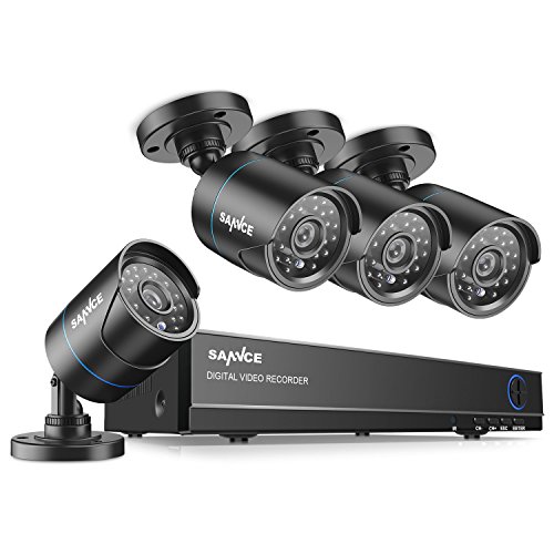SANNCE 4-Channel HD 1080N Security Camera System DVR and (4) 1.0MP Indoor/Outdoor Weatherproof Bullet Cameras with IR Night Vision LEDs, Remote Access (No HDD)