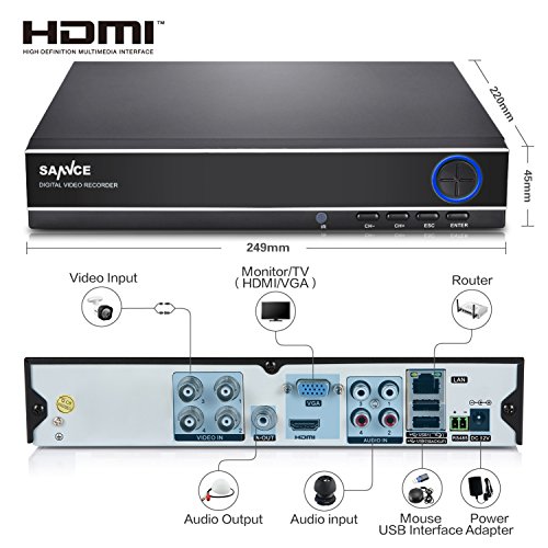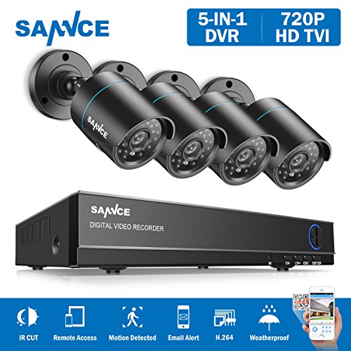 SANNCE Security Camera System 4CH HD-TVI 1080N DVR and (4) HD 720P/1280TVL Indoor/Outdoor Weatherproof Surveillance Cameras, Motion Alert, Smartphone, PC Easy Remote Access - NO HDD