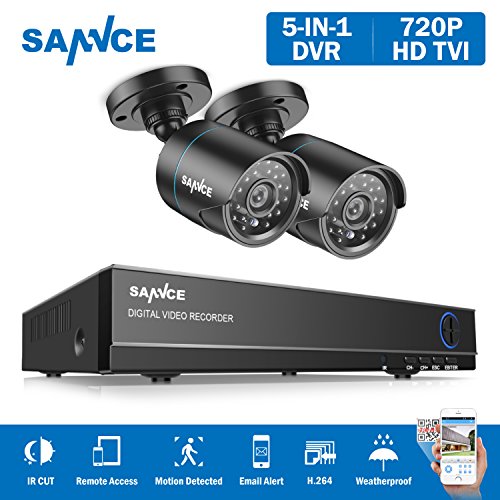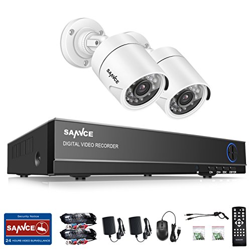 SANNCE 4CH HD 720P DVR Recorder Video Surveillance System and (2) 720P (1280TVL) Indoor/Outdoor Weatherproof Bullet CCTV Cameras, 66ft IR LED Night Vision - NO HDD