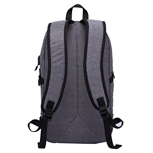 -. Feature : Dimensions: 12.2" (L)x 20"(H)x 5.7"(W). Capacity: 35L with large laptop compartment holding laptops under 17 inch. Color: Gray. / Material: Durable Oxford Fabric. Durable Metal Zippers. Sturdy Leather Belt. Water Resistant, keep your backpack contents dry on a rainy day. / Multiple pockets provide your books, laptop, camera, mobile phone, pen, wallet and other items with a separated space and keep them well organized. / Convenient to charge your electronic device anywhere with external USB with built-in charging cable. / Soft decompression shoulder straps design make you more comfortable and it offers light-weight carrying.