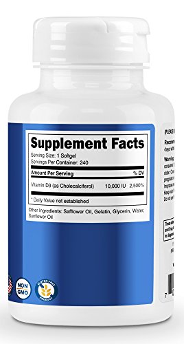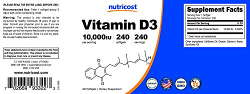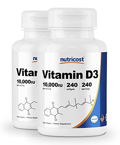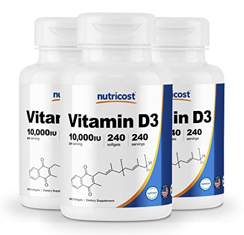 Nutricost Vitamin D3 provides 10,000 iu of Vitamin D3 per Capsule while still providing the best price available. Nutricost Vitamin D3 only uses the highest quality ingredients, is Non-GMO and is Gluten Free.Feature