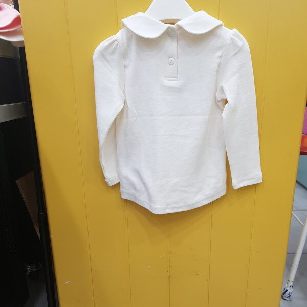 라운드 카라가 포인트인 티셔츠입니다.원피스에 레이어드 하면 좋습니다.작게나오는사이즈여유있게주문하시면편해요.