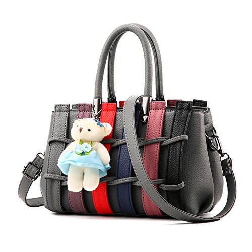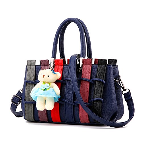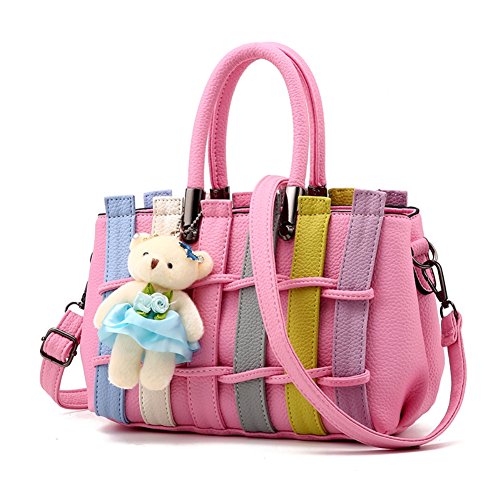Lining Fabric: Polyester. Comfortable PU Leather Fabric: texture is clear and natural, soft and comfortable, non-slip wear, bright surface texture; Plush Ornaments: Designer combine fashion elements, add a plush bear to the bag, colorful woven belt.