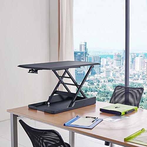 -. Title : Signstek 33in x 19in Height Adjustable Standing Desk Convert Any Desk to a Sit/Stand Up Desk for Desktop Computers and Laptops, Black