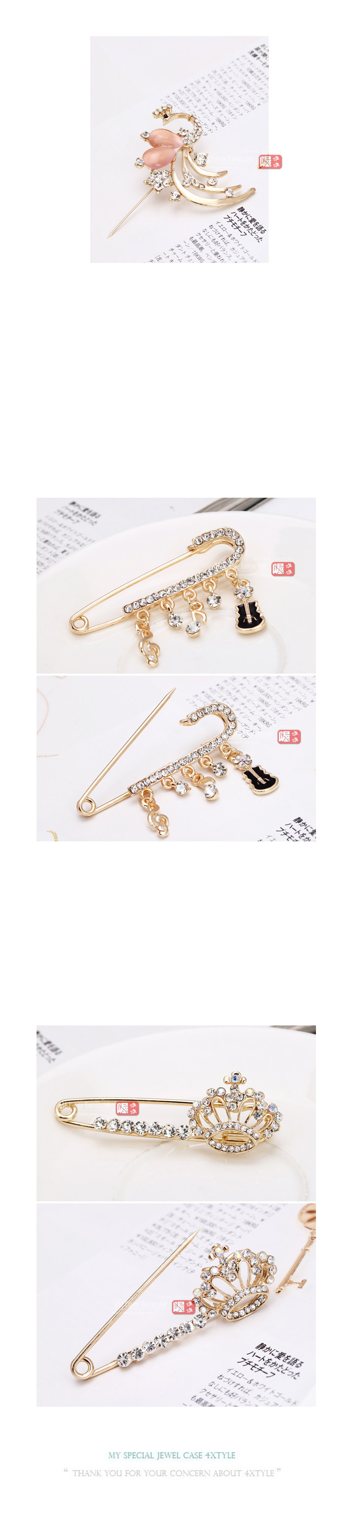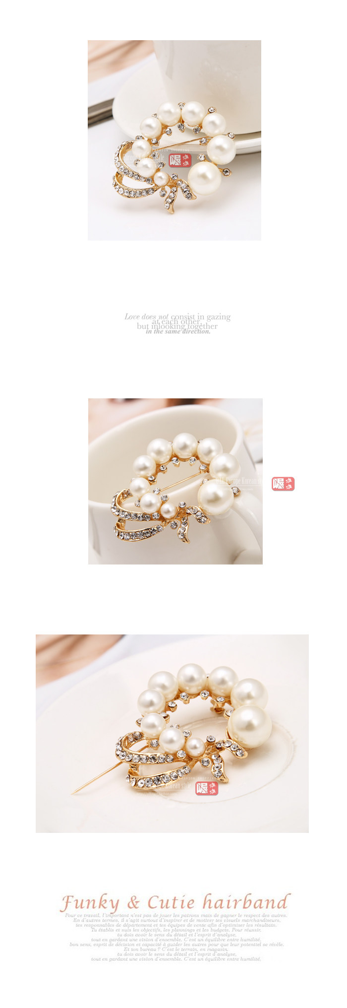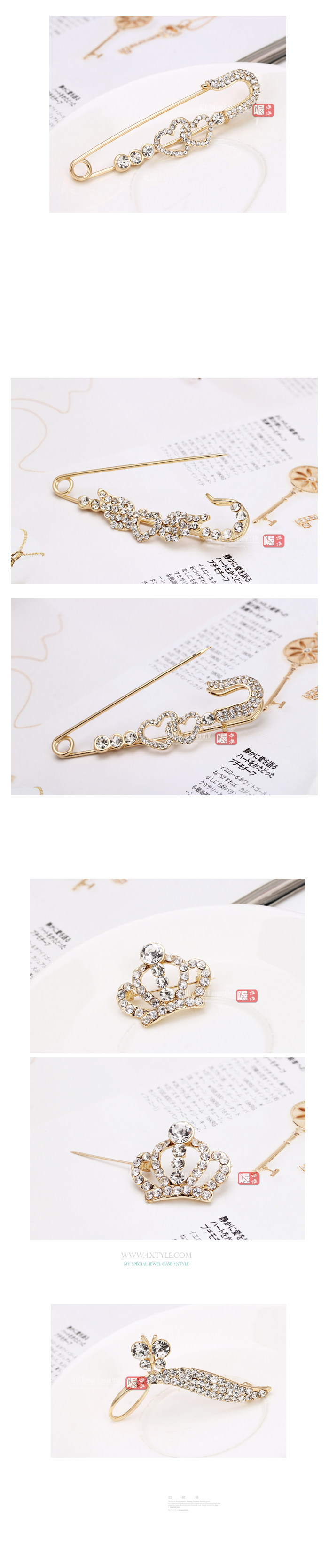 Korean Korean jewelry pearl diamond crystal brooch pin buckle double heart buckle shawl