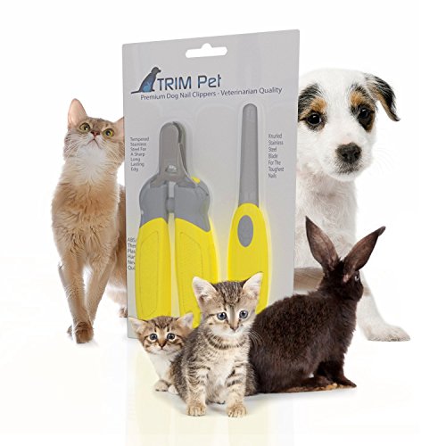 Trim-Pet Dog Nail Clippers ~ Professional Vet Quality ~ Razor Sharp Stainless Steel Blades With Safety Guard ~ Ergonomic Designed Handles For Easy Precise Cutting ~ Groom Small, Medium Or Large Dogs And Cats ~ Nail Trimmers Designed By Veterinarians ~ Tri