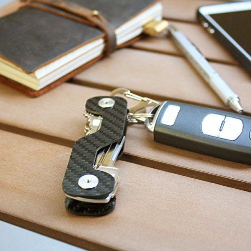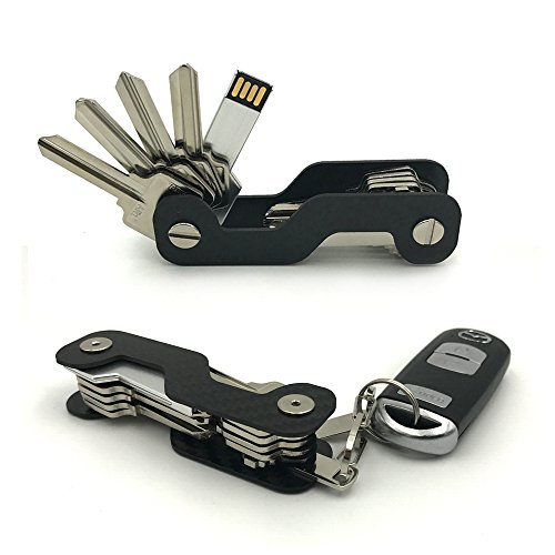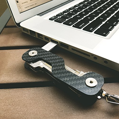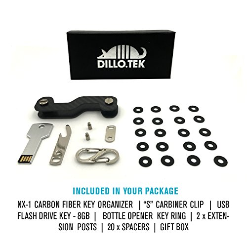 Compact EDC Carbon Fiber Smart Key Holder by DilloTek - Minimalist Keychain Organizer Holds up to 14 Keys, Comes with BONUS Bottle Opener & 8GB USB Flash Drive Key