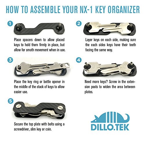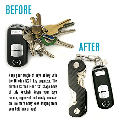 COMPACT QUALITY - The stylish & durable DilloTek NX-1 key holder is made of high impact lightweight carbon fiber with stainless steel screws and anti-loosening washers - added to prevent loosening over time. The sleek ergonomic design allows you to easily fold your keys compact enough to fold your keys in and out quickly with just one hand.