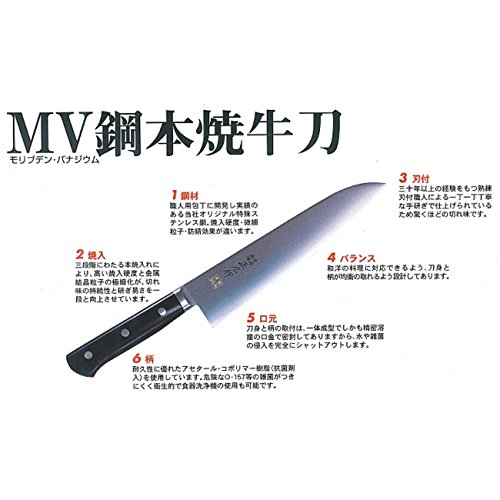 크기:270mm플라스틱무늬 사용으로 위생적MV 본소 시리즈는,녹에 강하고, 칼이 드는 정도의 지속성 이 뛰어난 마사《히로오리지나루》의 스테인레스강 (MBS-26)를 사용 하고 있습니다 마사히로 오리지날 특수 스테인레스 강재에 3단계 담금질에서,담금질 경도나 세입조직을 개선!1개 1개,숙련 직공(직인)에 의한 수(칼 따위를) 갊에 마무리,놀라는 정도의 칼이 드는 정도를 실현 한 항균 제 들어간 수기름기 핸들은,항균 대책보다 뛰어나고, 내부식성도 좋습니다!양식,일본 요리의 요리에 대응 할 수 있는 부엌칼입니다 소도:주로 고기를 자르는 것으로(에) 최적!크기용량우도 270mm인 길이:약 270mm 생산지:일본 소재 성분 블레이드 재질: 숲《부덴바나지우무》강 핸들 재질: 《아세타루코포리마》수지(항균 제 들어감)