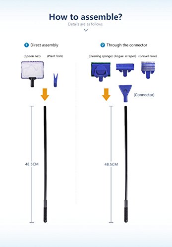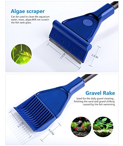 The 5 accessories, a fish net,an algae scraper, a window sponge,a plant fork and a gravel rake,make aquarium maintenance as simple as can be.