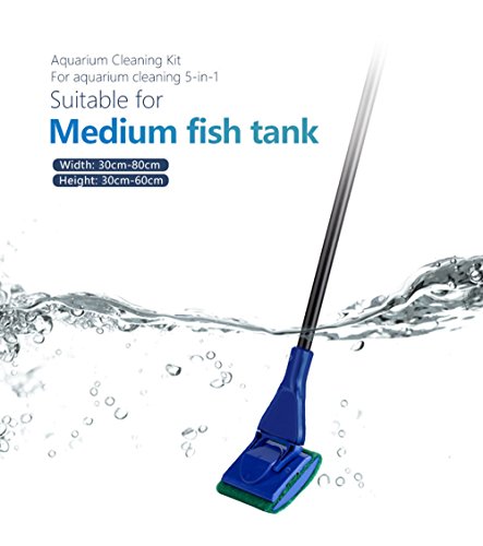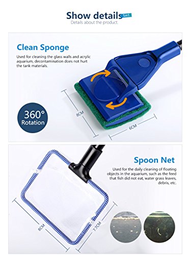 Aisige 5Pcs/set Aquarium Tank Cleaning Kit Fish Net Gravel Rake Algae Scraper Fork Sponge Brush Glass Aquatic Cleaning Tools