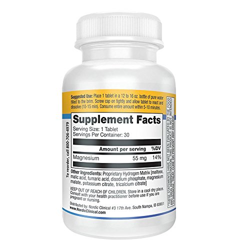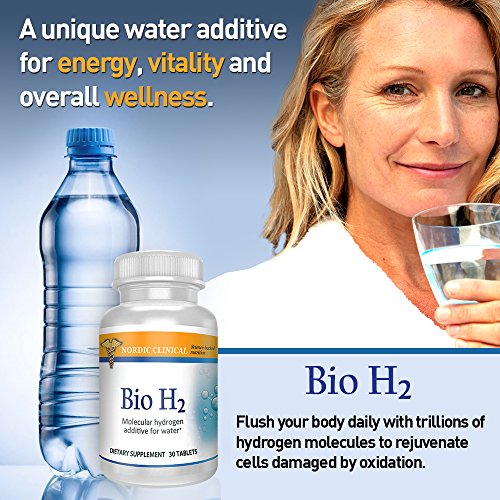 Nordic Clinical Bio H2 is a molecular hydrogen additive and antioxidant supplement that when used correctly can increase energy and stamina. Bio H2 includes a proprietary blend of micronized elemental magnesium, malic acid, fumaric acid and maltose. When mixed with water, each tablet of Bio H2 generates a heavy doze (up to 3 ppm) energy stimulating molecular hydrogen. In fact, the proprietary formula in Bio H2 produces 800% more molecular hydrogen than typical water ionizers generate. The use of one table per day approximates the dose used in hydrogen therapy research, which floods your body with trillions of free radical-quenching H2 molecules.