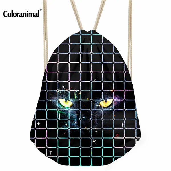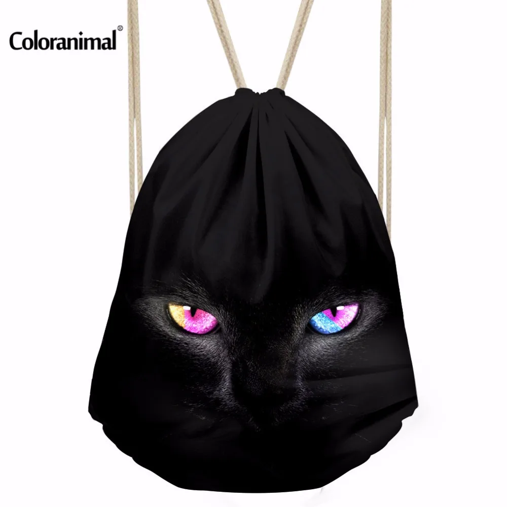 pattern:black cat print drawstring bag