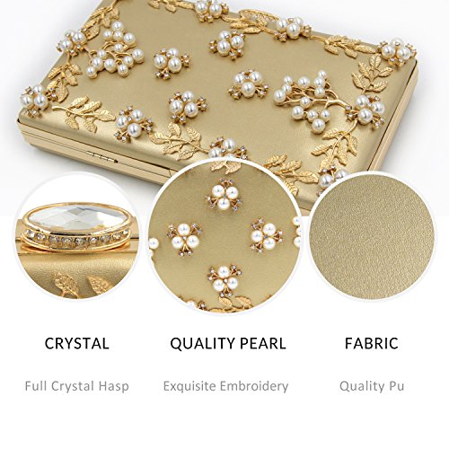 【Design】Diamond Style Clasp Closure With Crystals. Front View Decorated With Gold Metal Leaves And White Pearl Flowers. Matches Perfectly Together.
