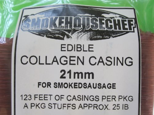 -. Feature : 5 Strands of snack stick casing. 21 mm. / Smart size. Each strand holds approx 5 lbs of meat / Fill with sausage stuffer, then freeze or smoke. / Fresh collagen casings. / FAST shipping from Butcher-Baker