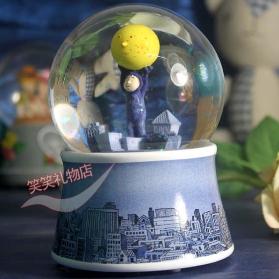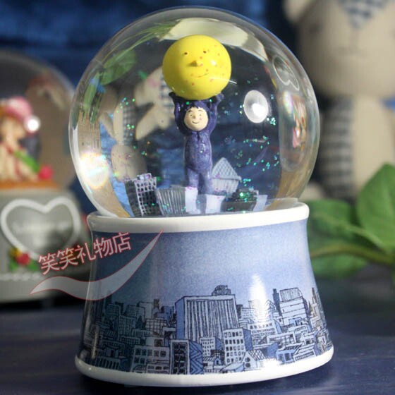 轻轻摇晃一下水晶球,里面的彩片很轻,会在水晶球里飘浮一会儿