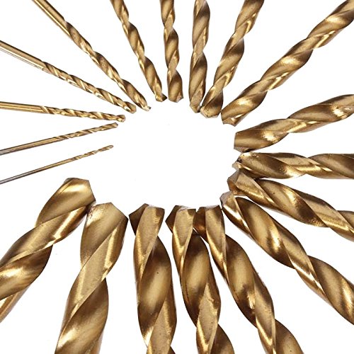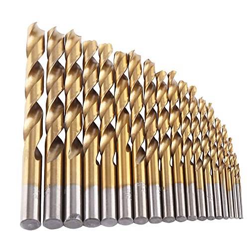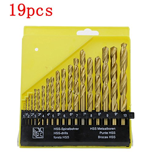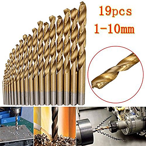 Migiwata 1.0-10mm Straight Shank Titanium Coated High Speed Steel Twist Drill Bits Set of 19pcs in 19 Sizes for General Purpose