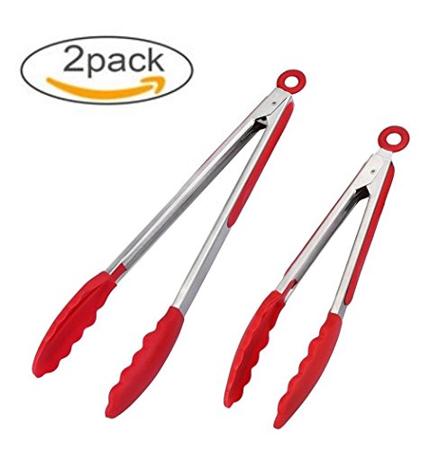 - With scalloped steel heads coated in silicone, tongs with silicone tips are firm and angled to offer amazing grip and control. Just compare them to your old nylon tongs or plastic tongs - these are the best tongs for cooking, grilling meat, or use as serving tongs or salad tongs. They're heat resistant to 480°F so you can grab and flip in the hottest environments. Unlike pure stainless steel tongs, our silicone tipped tongs are non-stick friendly to protect your expensive pots and pan