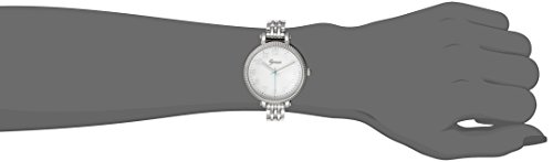 Silver dial with Arabic hour markers, skinny silver three link band^Quartz movement with analog display, not water resistant^Analog-quartz movement^Case diameter: 35mm^Not water resistant