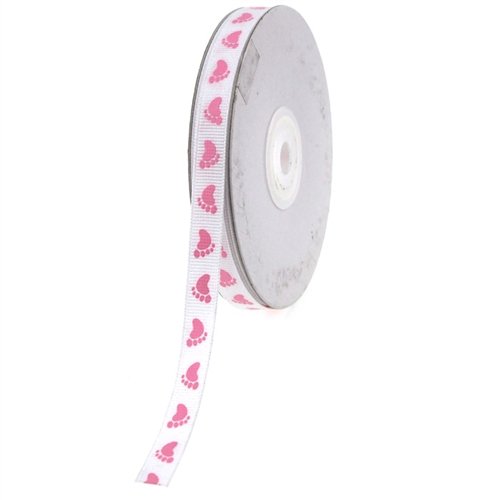 Homeford FJT000961103 Baby Footprint Grosgrain 25 yd Ribbon, 3/8", Light Pink