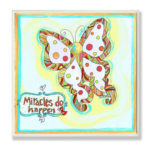 The Kids Room by Stupell Miracles Do Happen Polka Dot Butterfly Square Wall Plaque