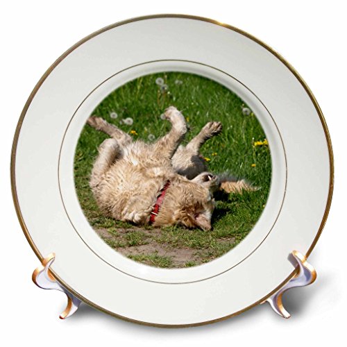 3dRose cp_78913_1 Golden Retriever Plays Porcelain Plate, 8-Inch