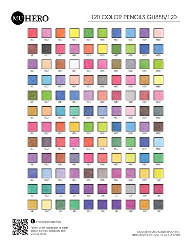 - PREMIUM QUALITY: This MU Hero colored pencil set comes with 120 creamy, vibrant colors that blend and layer easily. Along with various shades traditional colors like red, blue, and green, this set includes hard-to-find colors like skin tones, neon, and metallic colored pencils. Each pencil is color and number coded and comes pre-sharpened with a strong, thick core surrounded by high-quality, break-resistant wood.Superior high level box packing with trays inside provides good space for storing.