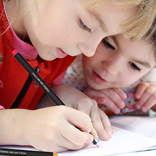 - 【24 UNIQUE VIVID COLORS】: A wide variety of 24 colors Fineliner Pens, No Duplicates. 0.4 mm fine tip line point marker pens.Pen cap and pen tail draw the same color, easy to distinguish.Try color coding your activities & appointments to simplify your life!