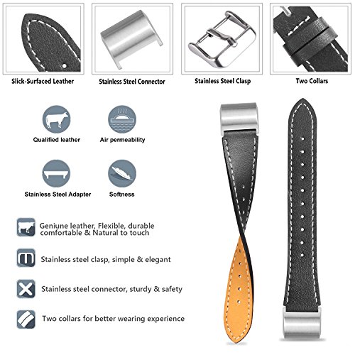 Fitbit Charge 2 Band - ICHECKEY Genuine Leather Wristband Replacement Bracelet, Large Small Charge 2 Fitness Bands with Metal Connector
