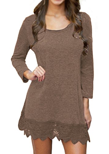 Songbai women casual tunic dress features lace hem and cotton fabric which has a good stretchability, sexy and comfortable, simple but elegant