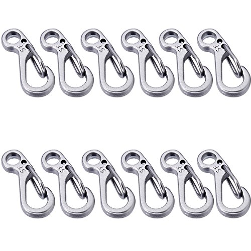 -. Feature : Quantity: 12-pieces / Size: about 2.5cm, hole diameter 0.5cm, weight: 2.1g / Material: well made aluminium alloy,no nickel plating or rolling, water mill craft, exquisite and practical / Function:Perfect for the keychain/paracord/flashlight/ attaching compass/whistle and other EDC items / Great for MOLLE Systems and Equipment