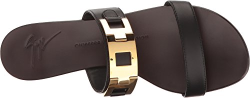 Binding : Apparel Product Description Keep your look on point throughout the seasons with Giuseppe Zanotti! Leather upper. Slip-on design. Open toe silhouette. Decorative leather strap across the vamp with gold-tone hardware. Leather lining. Lightly padded leather footbed. Low heel. Durable leather outsole. Made in Italy. This item may ship with an attached security tag. Merchandise returned without the original security tag attached or a damaged tag may not qualify for a refund. Measurements: Heel Height: 1?2 in Weight: 7 oz Product measurements were taken using size 37.5 (US Women's 7.5), width M. Please note that measurements may vary by size. 0