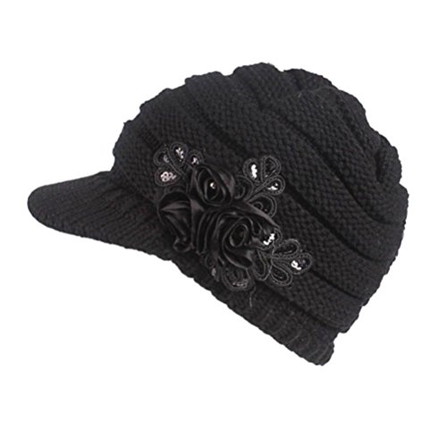 Hunputa Womens Hat Winter, Winter Knit Hat Stretch Warm Flower Beanie Ski Cap With Visor For Wo...