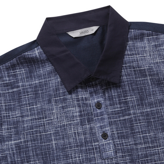 - 앞판의 잔잔한 패턴으로 포인트를 준 남성 티셔츠.