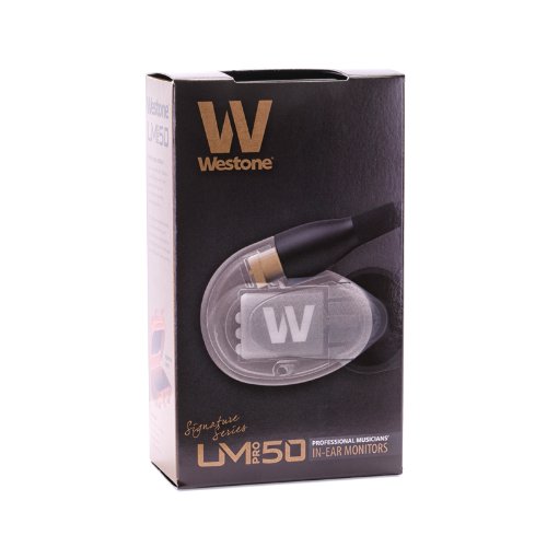-. Feature : When you demand quality, you need the Westone UM Pro50. The Westone Signature series, the UM Pro50 features 5 balanced armature drivers with a passive 3-way crossover to deliver enhanced sonic detail and frequency range that goes well beyond what others claim to do. And with premium comfort tips, a replaceable cable, cleaning tool and a mini-monitor vault, the UM Pro50 is ready to work hard right out of the box. / Westone True-Fit Technology 50+ years experience with in-ear applications has yielded a low profile, lightweight, universal earpiece which delivers maximum comfort and in-ear coupling for dynamic transfer of sound. / Westtone True-Fit Technology 5 Balanced Armature drivers with passive 3-way crossover Epic Replaceable cable with MMCX connectors. / EPIC Replaceable Cable Westone´s robust replaceable cable is constructed of bifurcated, high-flex, ultra-low resistance tensile wire, reinforced with a special aramid fiber, and braided for ultimate durability, acoustic transparency, and isolation from mechanical cable noise. The replaceable audiophile connector makes this solution conveniently user-removable and replaceable. / Designed & Assembled in the USA Meticulously built by a staff of dedicated artisans and lab techs, Westone´s USA products exhibit a level of craftsmanship that truly embodies America´s rich history of handmade artistry.